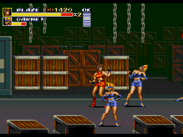 슈퍼 잔: 잔을 선택한후 스테이지 1이 시작할때까지 1P, 2P의 C버튼을 계속 누르고 있으면 된다. 기본공격이 연속 스트레이트로 바뀌는데 새미와 마찬가지로 위력이 상당하다. 하지만 새미와는 달리 리치가 길어서 이거 하나로 뒷골목을 제패할 수 있다. 시전시간이 길어서 조금 불편한 액셀과는 달리 시전시간도 짧다. 최강의 밸런스 붕괴 기술 2.