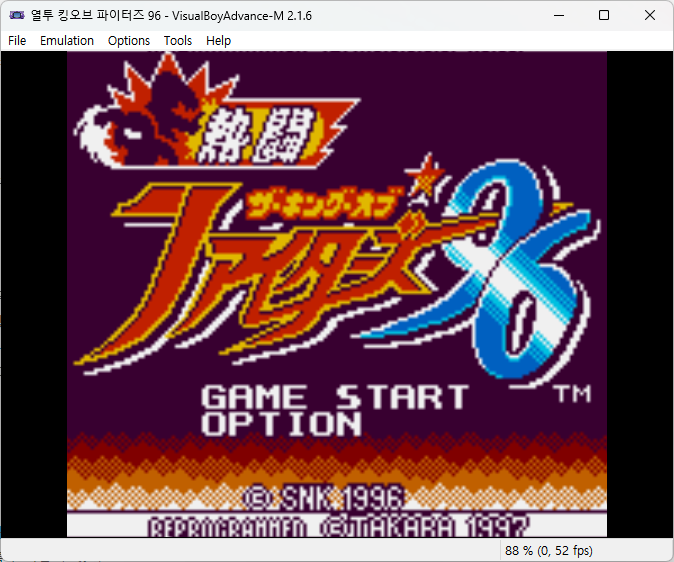 안녕하세요 이번 게임은 전작에 이은 오락실 인기게임 킹오브 파이터즈 96을 TAKARA에서 게임보이에 이식하여 만든 열투 킹오브 파이터즈 96입니다. 열투 킹오브 시리즈의 마지막 작품이자 최고 명작으로 추앙받는 작품이기도 합니다.